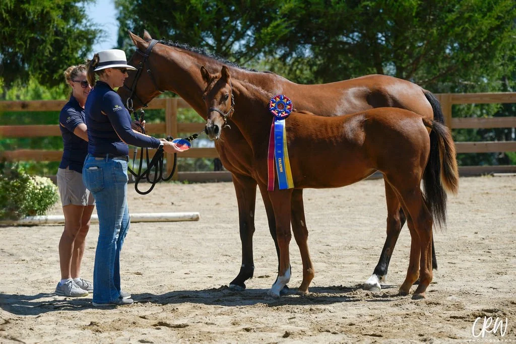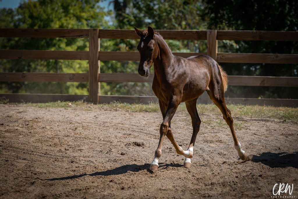 Oakley was born March 28th, 2025. She is out of Oshi-T a premium Holsteiner mare bred by Andras Szieberth and owned by Crystal Kendrick.